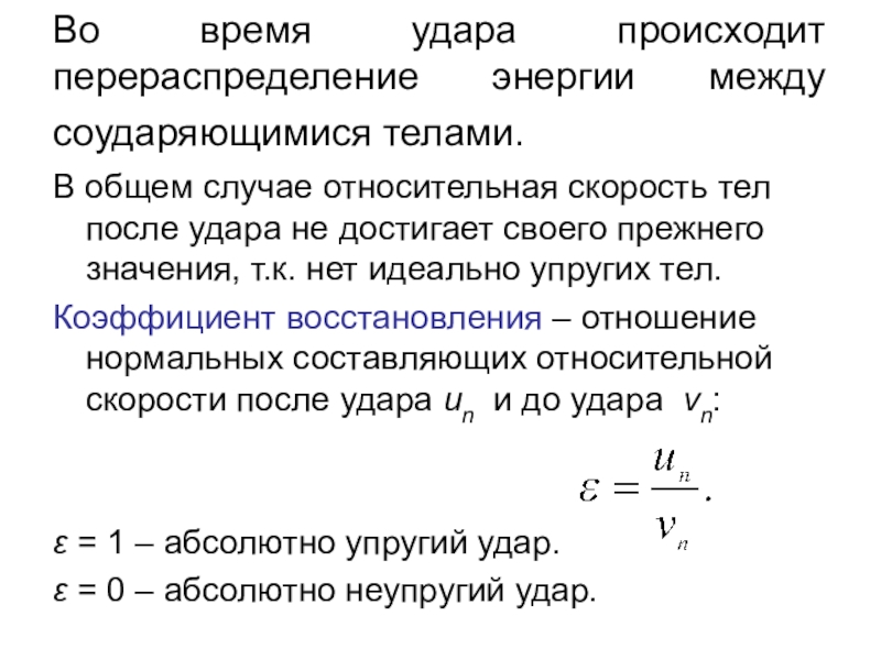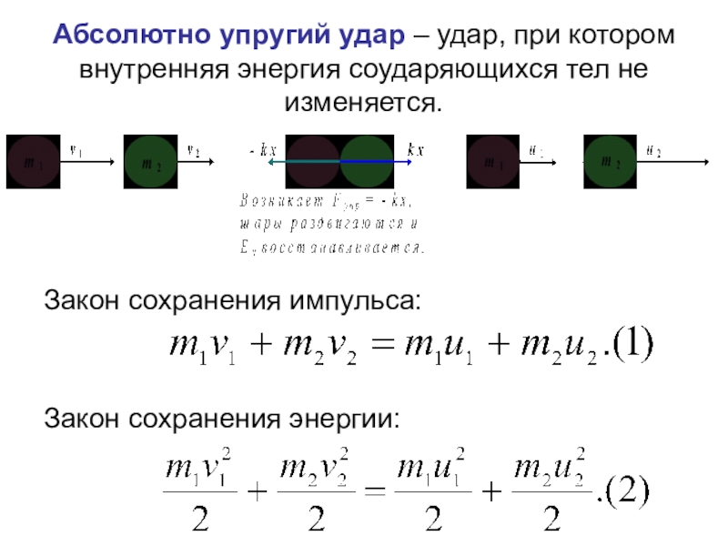 Центральный удар (двух шаров) – удар, при котором движение происходит по прямой, соединяющей центры тел.