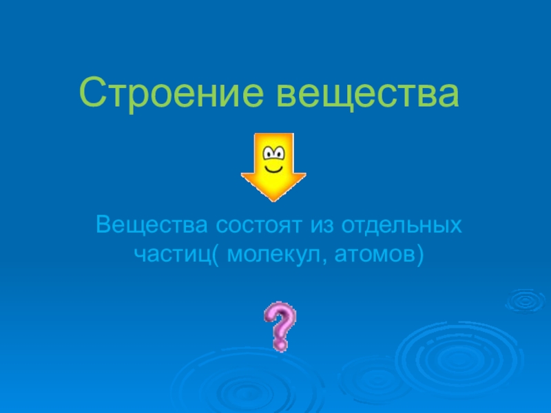 Строение веществаВещества состоят из отдельных частиц( молекул, атомов)