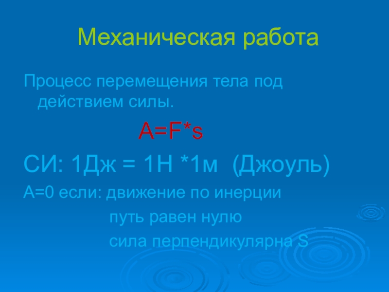 Механическая работаПроцесс перемещения тела под действием силы.