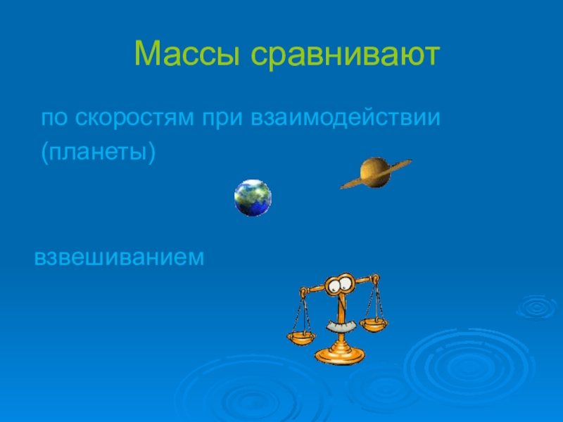 Массы сравнивают по скоростям при взаимодействии (планеты)взвешиванием