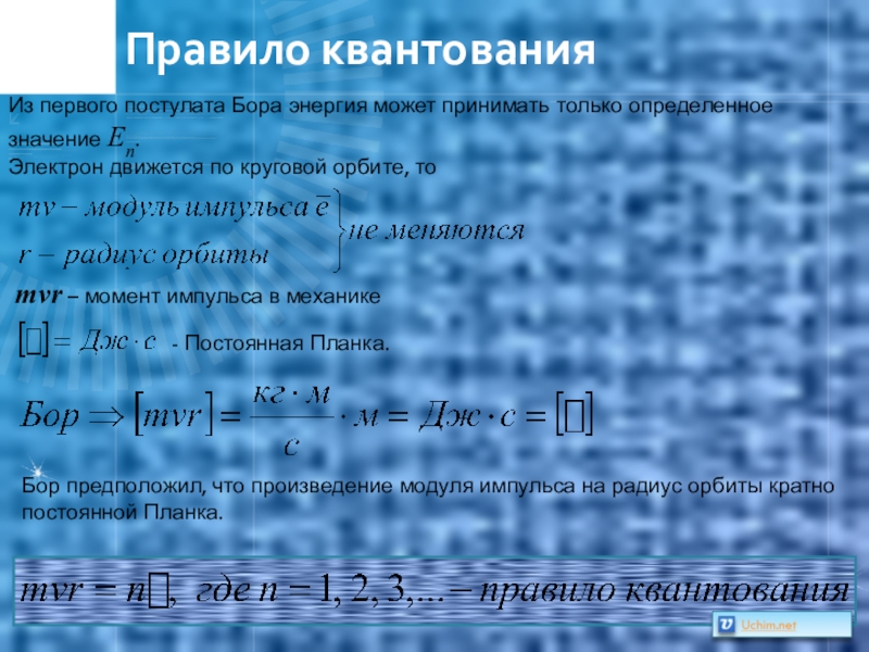 Бор предположил, что произведение модуля импульса на радиус орбиты кратно постоянной Планка.
