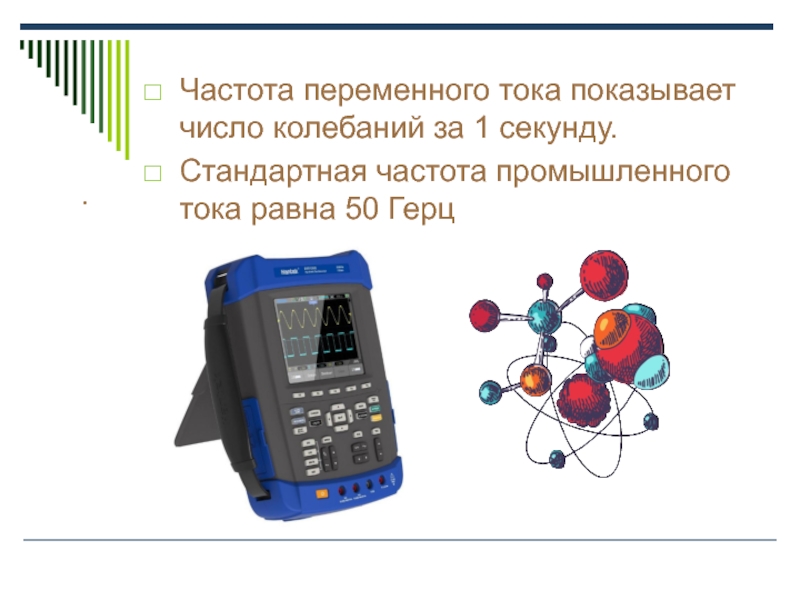 .Частота переменного тока показывает число колебаний за 1 секунду.Стандартная частота промышленного тока равна 50 Герц