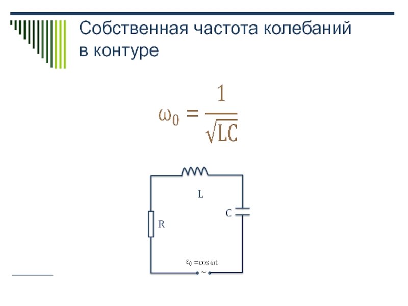 Слайд 17Собственная частота колебаний в контуре