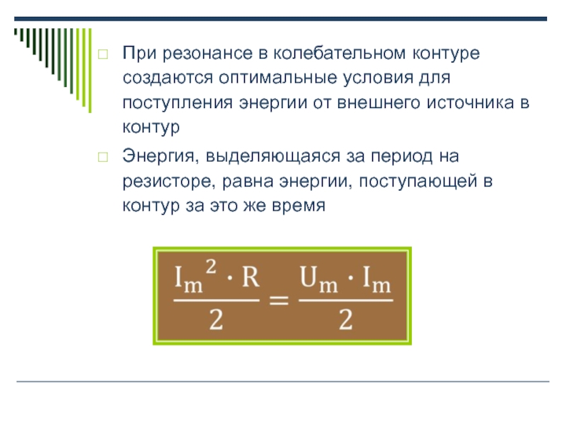 Слайд 19При резонансе в колебательном контуре создаются оптимальные условия для поступления энергии