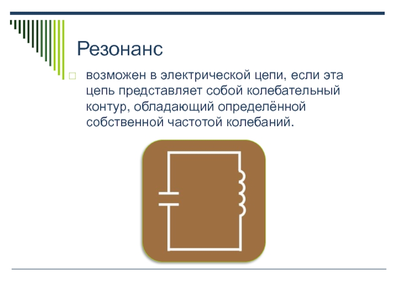 Резонансвозможен в электрической цепи, если эта цепь представляет собой колебательный контур, обладающий определённой собственной частотой колебаний.