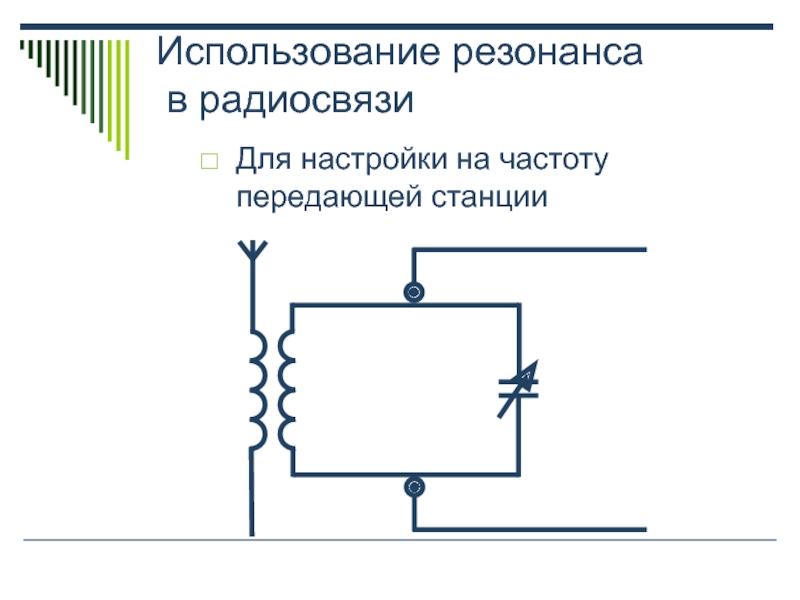 Использование резонанса  в радиосвязи Для настройки на частоту передающей станции
