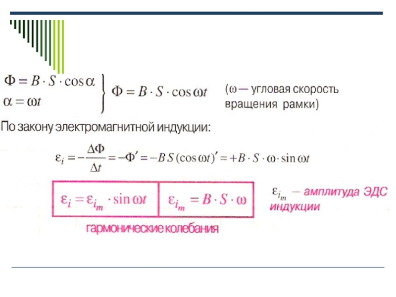 Переменный ток- вынужденные электромагнитные колебания.- ток, сила которого изменяется со временем по гармоническому закону.- вынужденные незатухающие колебания, вызванные периодически изменяющейся ЭДС