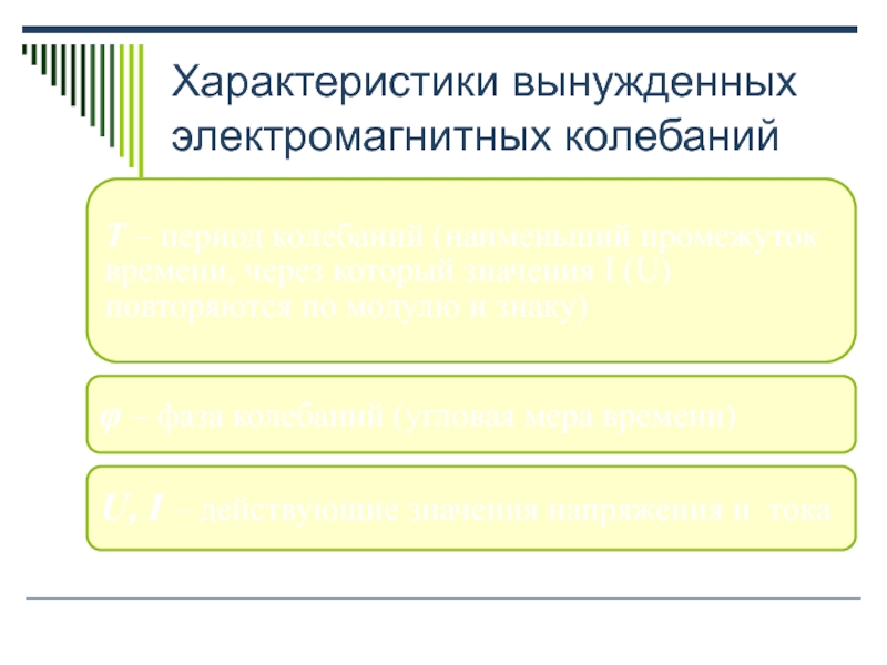 Слайд 12Характеристики вынужденных электромагнитных колебаний