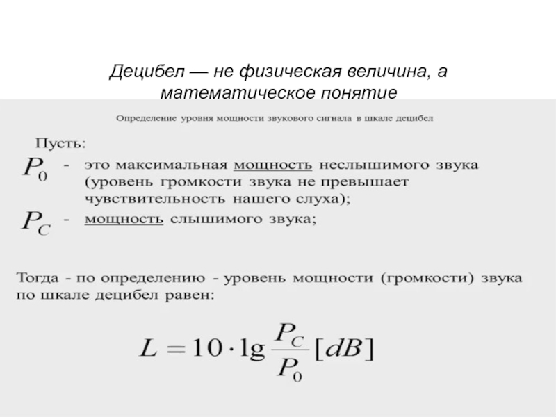 Слайд 26Децибел — не физическая величина, а математическое понятие