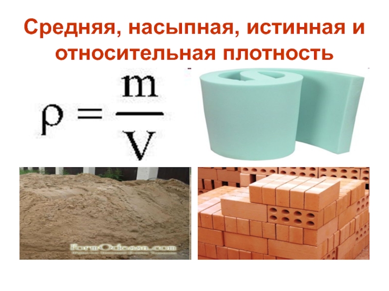Слайд 5Средняя, насыпная, истинная и относительная плотность