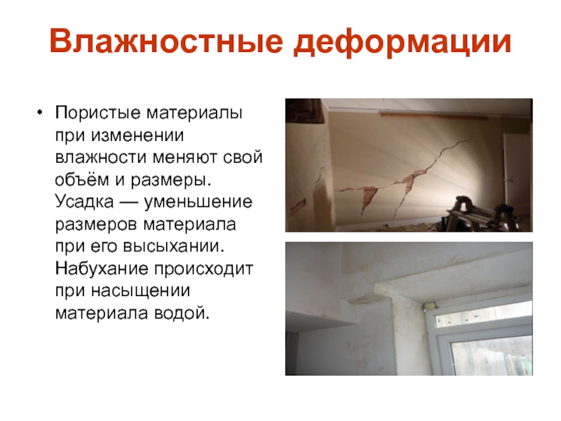 Слайд 8Влажностные деформации