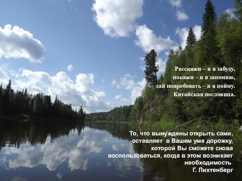 То, что вынуждены открыть сами, оставляет в Вашем уме дорожку, которой Вы сможете снова воспользоваться, когда в этом возникает необходимость.