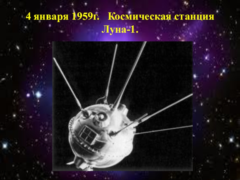 Слайд 74 января 1959г. Космическая станция Луна-1.