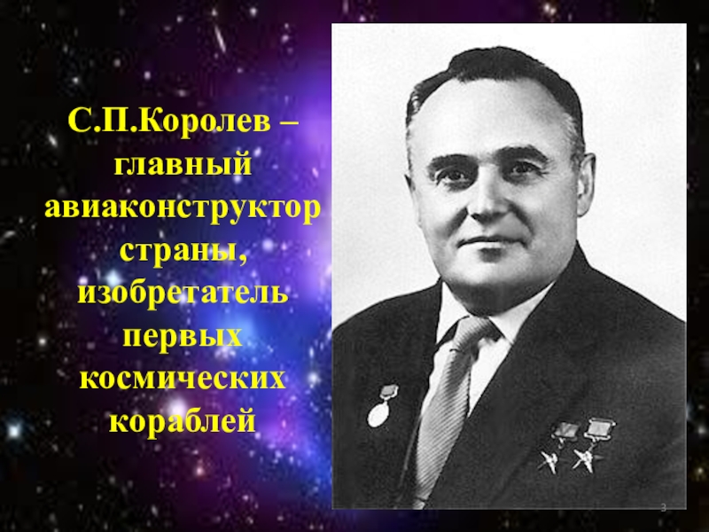 Слайд 3С.П.Королев – главный авиаконструктор страны, изобретатель первых космических кораблей
