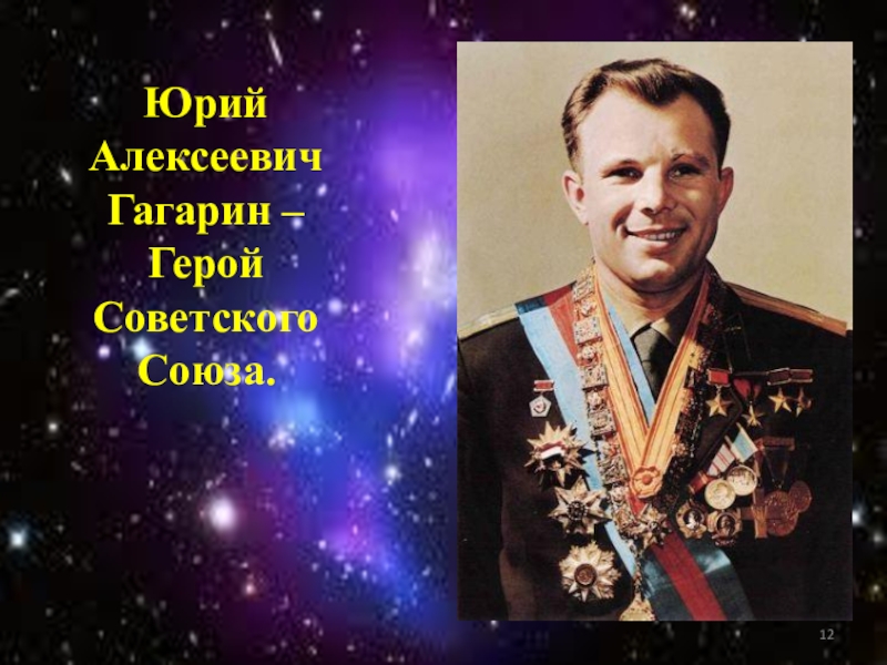 Слайд 12Юрий Алексеевич Гагарин – Герой Советского Союза.
