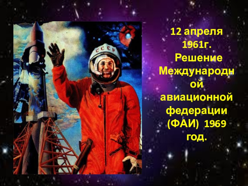 12 апреля1961г. Решение Международной авиационной федерации (ФАИ) 1969 год.