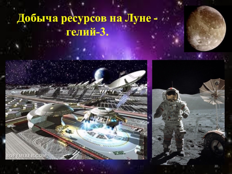 Слайд 30Добыча ресурсов на Луне - гелий-3.