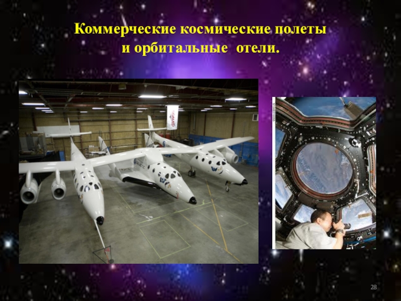Слайд 28Коммерческие космические полеты и орбитальные отели.
