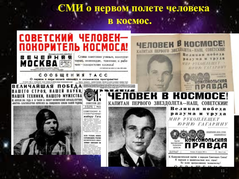 12 апреля 1961г. Ю.А.Гагарин. Космический корабль  Восток.