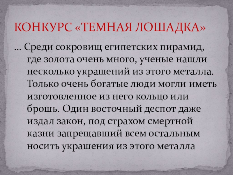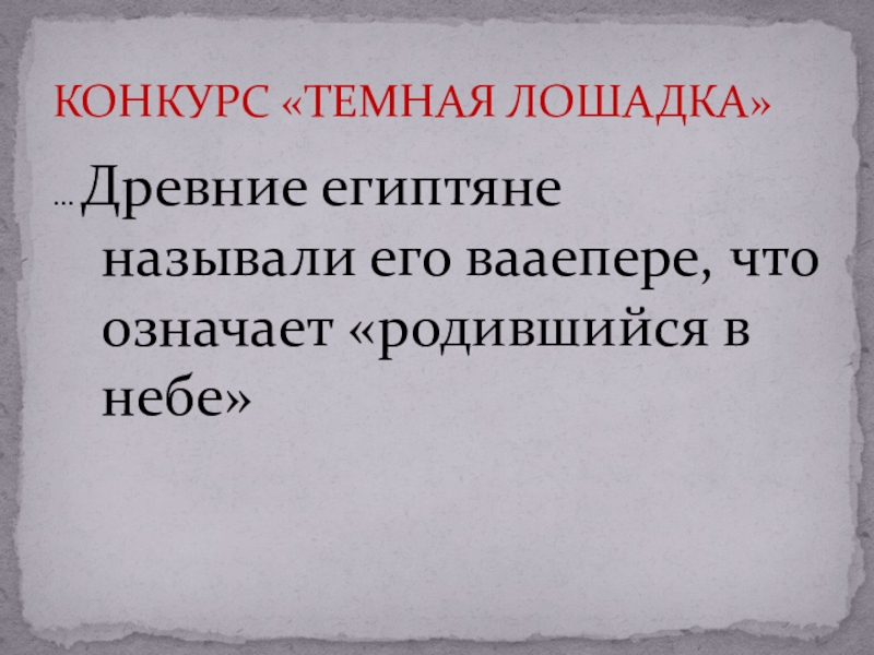 Конкурс «ТЕМНАЯ ЛОШАДКА»