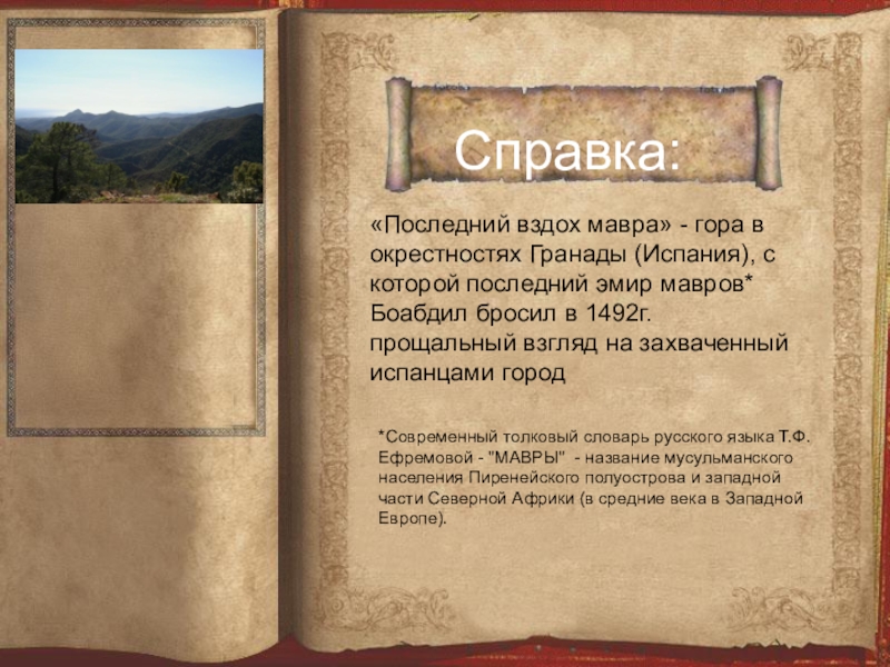 *Современный толковый словарь русского языка Т.Ф.Ефремовой - "МАВРЫ" - название мусульманского населения Пиренейского полуострова и западной части Северной Африки (в средние века в Западной Европе).