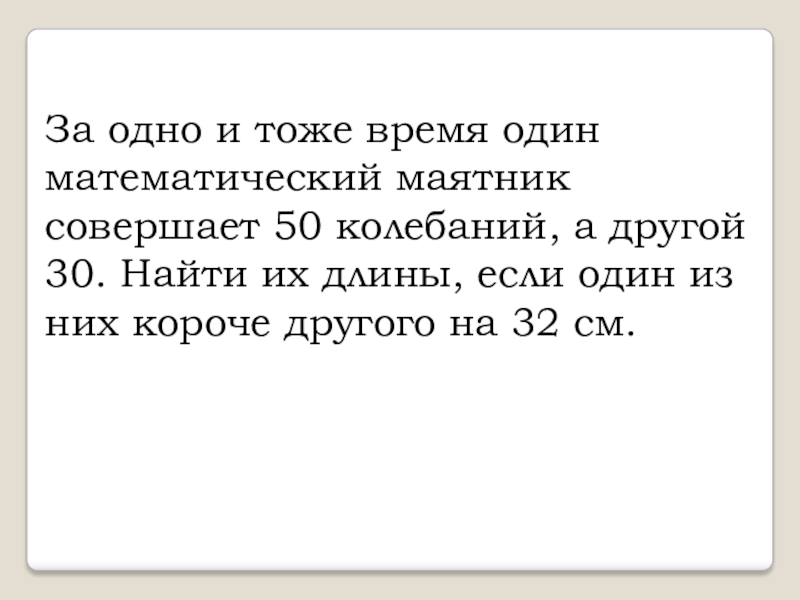 Слайд 5За одно и тоже время один математический маятник совершает 50 колебаний,