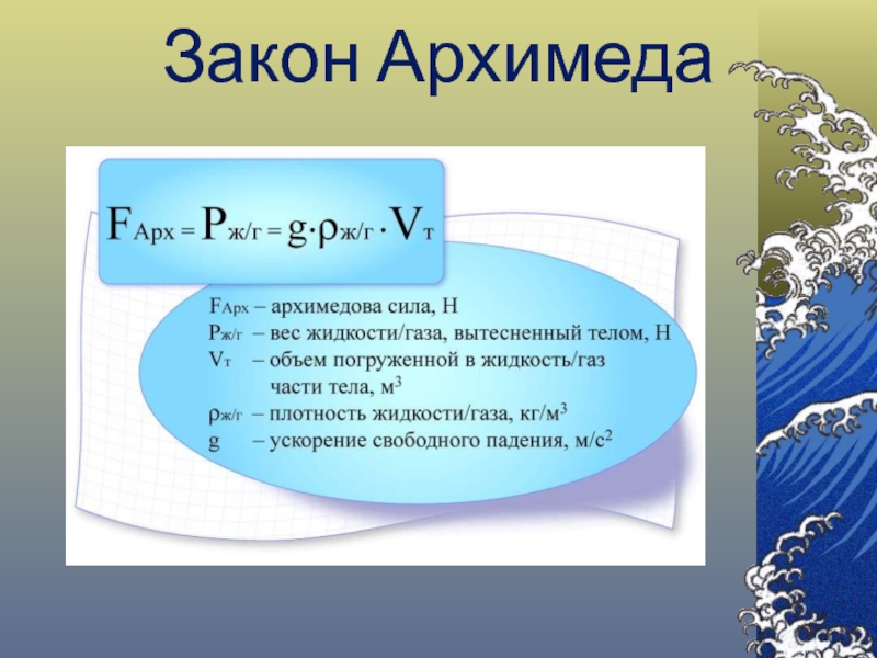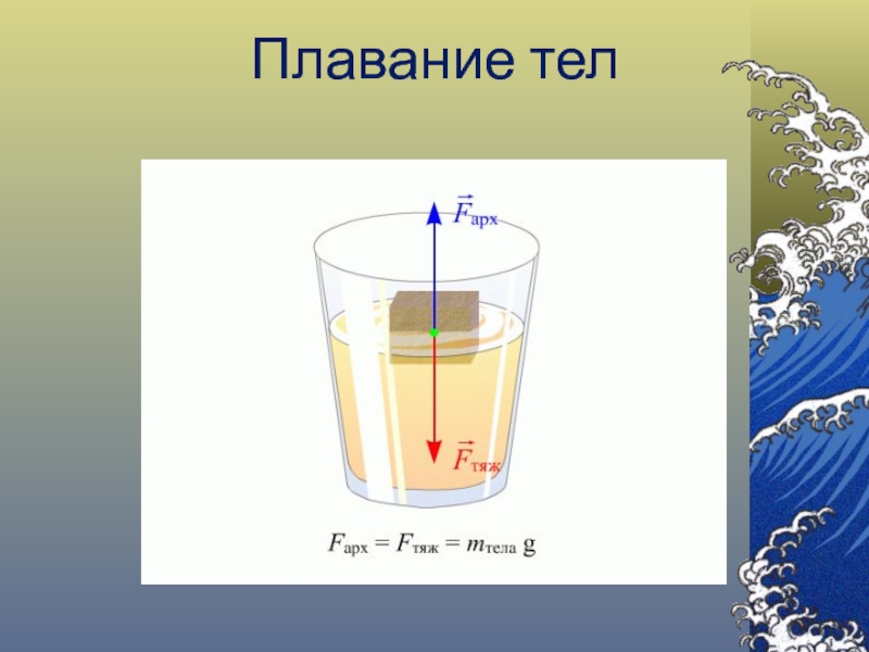 Слайд 2На тело, погруженное в жидкость или газ действует выталкивающая сила.