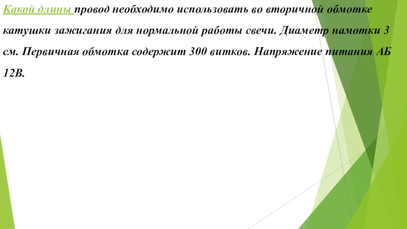 Слайд 11Какой длины провод необходимо использовать во вторичной обмотке катушки зажигания для