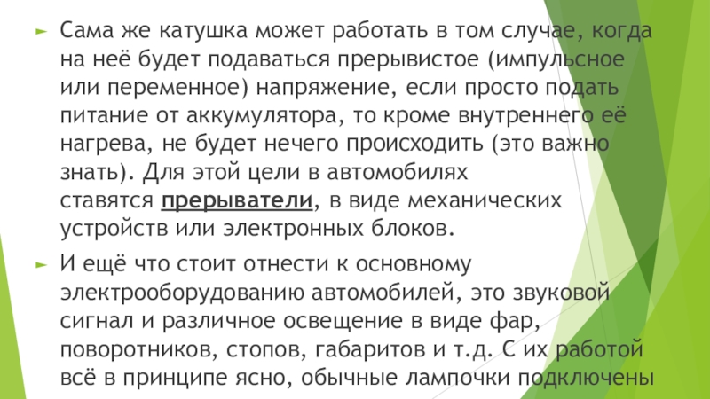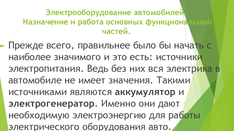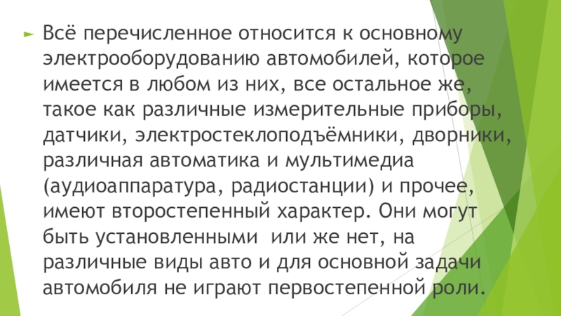 Слайд 20Всё перечисленное относится к основному электрооборудованию автомобилей, которое имеется в любом