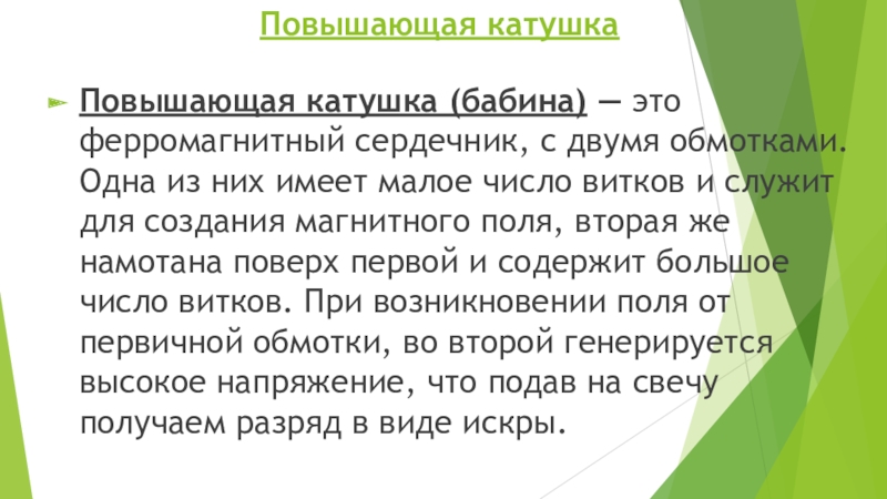 Повышающая катушка (бабина) — это ферромагнитный сердечник, с двумя обмотками. Одна из