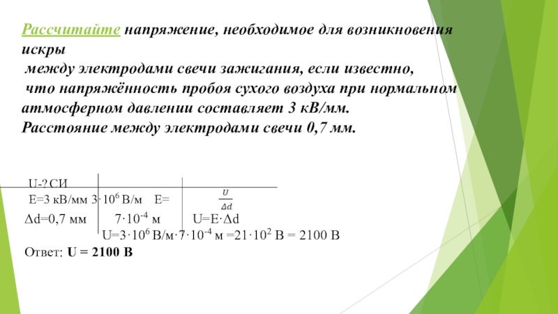 U=3·106 В/м·7·10-4 м =21·102 В = 2100 В