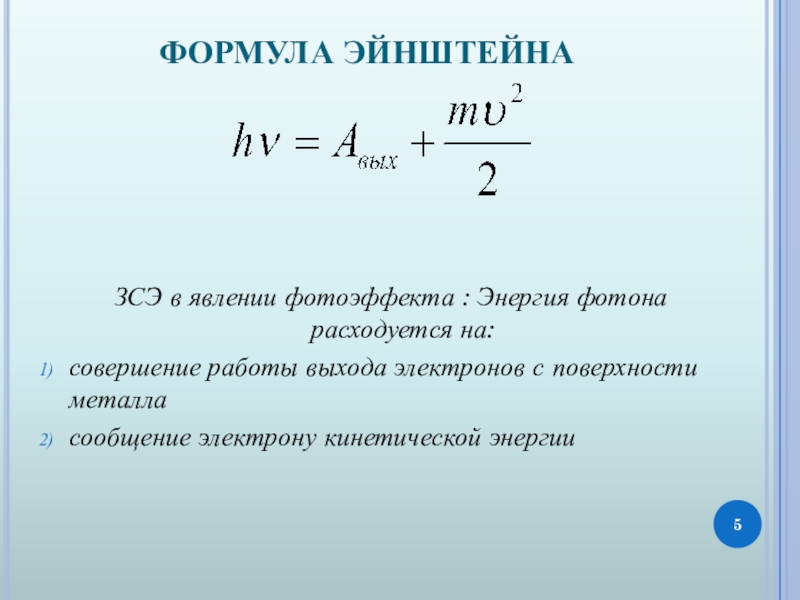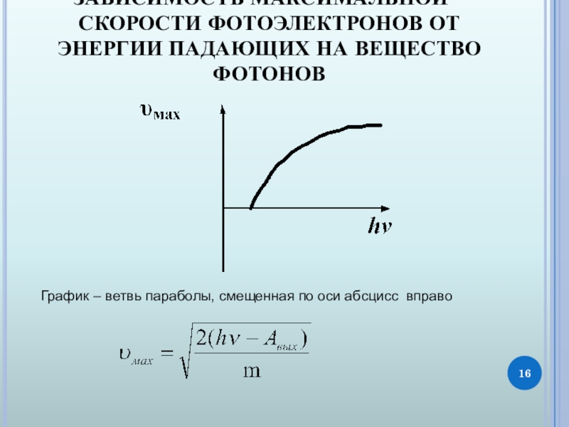 - зависит от максимальной кинетической энергии, которую имеют вырванные светом электроны
