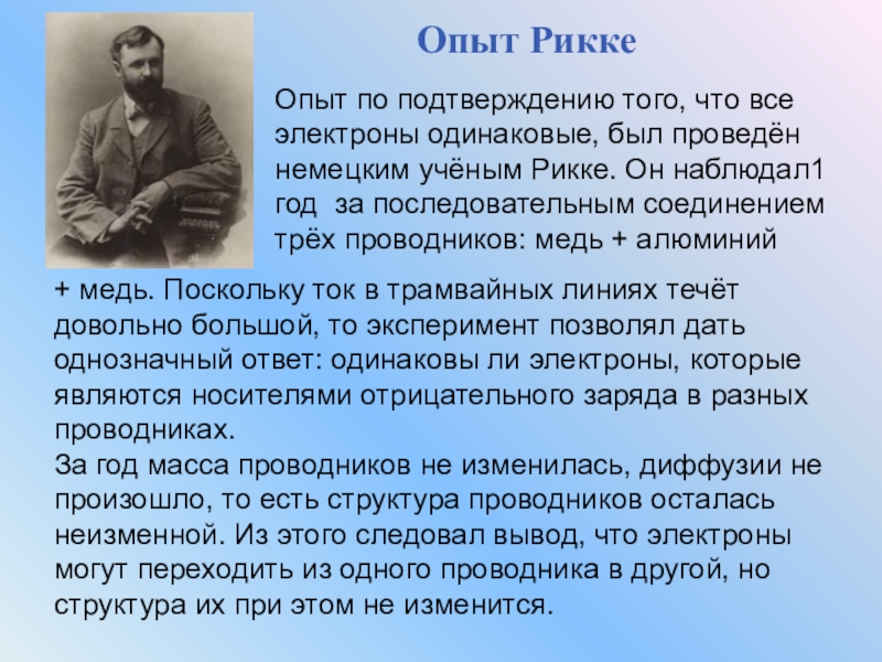 За год масса проводников не изменилась, диффузии не произошло, то есть структура проводников осталась неизменной. Из этого следовал вывод, что электроны могут переходить из одного проводника в другой, но структура их при этом не изменится.