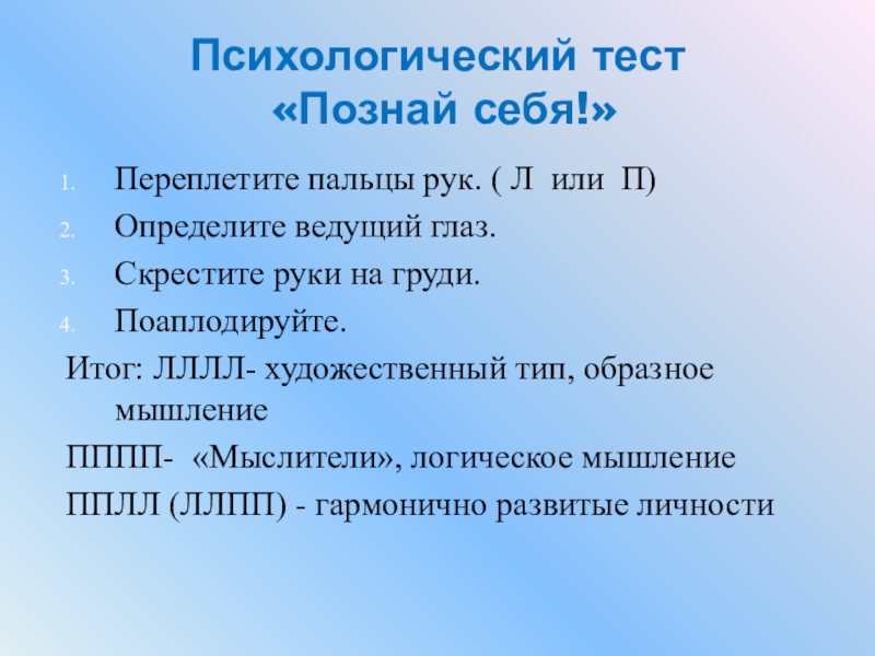 Это сайт презентаций, где можно хранить и обмениваться своими презентациями, докладами, проектами, шаблонами в формате PowerPoint с другими пользователями. Мы помогаем школьникам, студентам, учителям, преподавателям хранить и обмениваться учебными материалами.