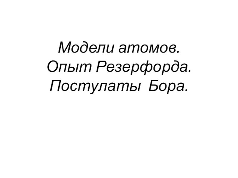 Слайд 1Модели атомов. Опыт Резерфорда. Постулаты Бора.