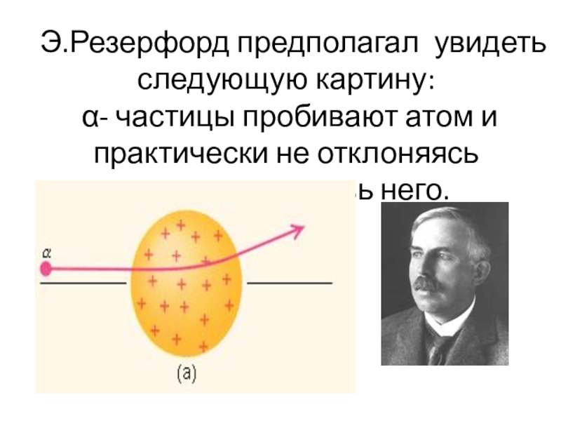 Слайд 3Э.Резерфорд предполагал увидеть следующую картину: α- частицы пробивают атом и