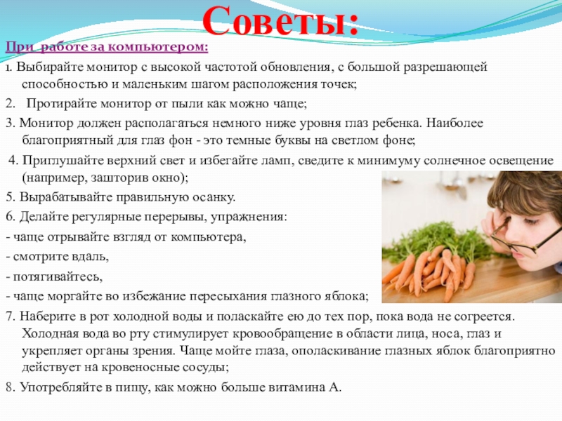- чаще моргайте во избежание пересыхания глазного яблока;