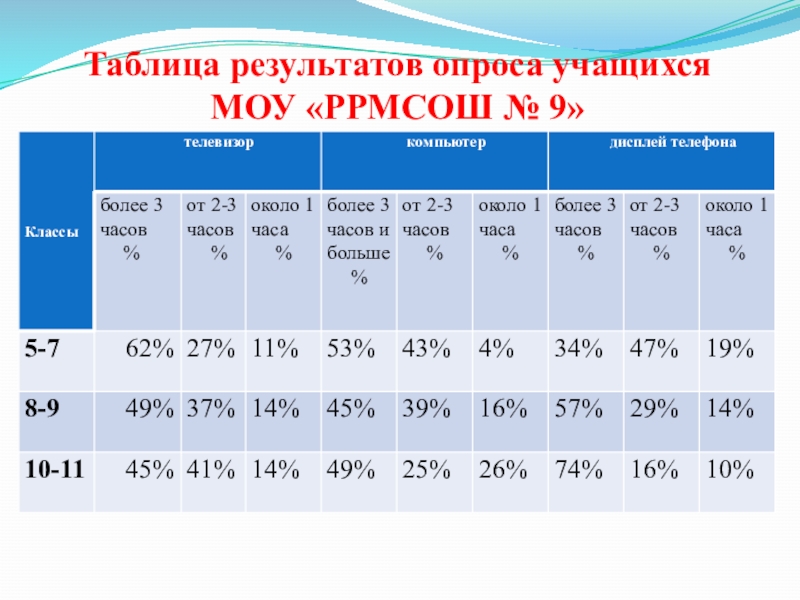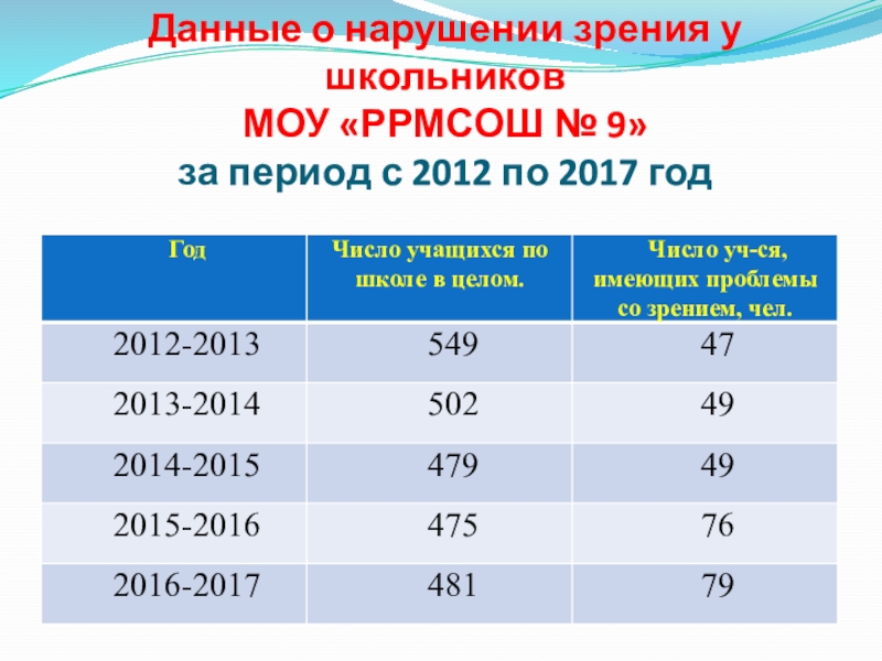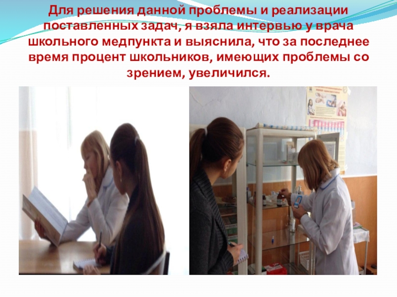 у врача школьного медпункта и выяснила, что за последнее время процент школьников, имеющих проблемы со зрением, увеличился.