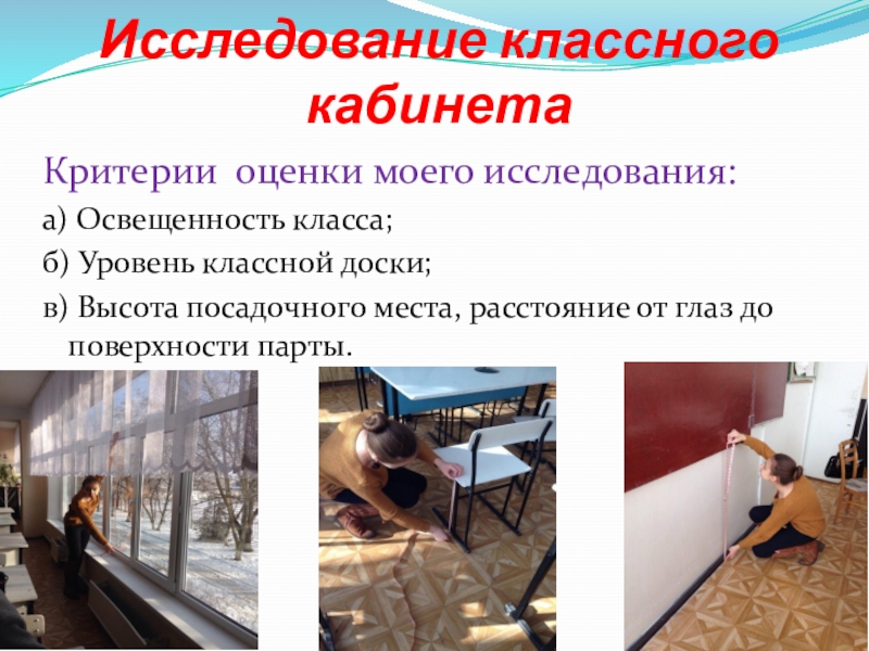 Высота посадочного места, расстояние от глаз до поверхности парты.