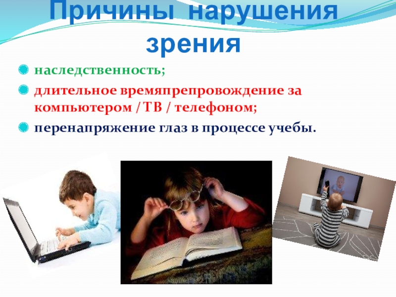 длительное времяпрепровождение за компьютером / ТВ / телефоном;