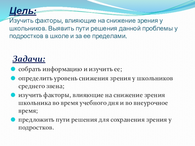 Изучить факторы, влияющие на снижение зрения у школьников. Выявить пути