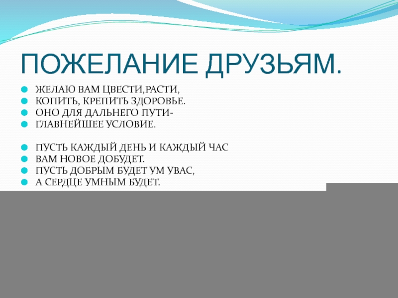 Слайд 24ПОЖЕЛАНИЕ ДРУЗЬЯМ.