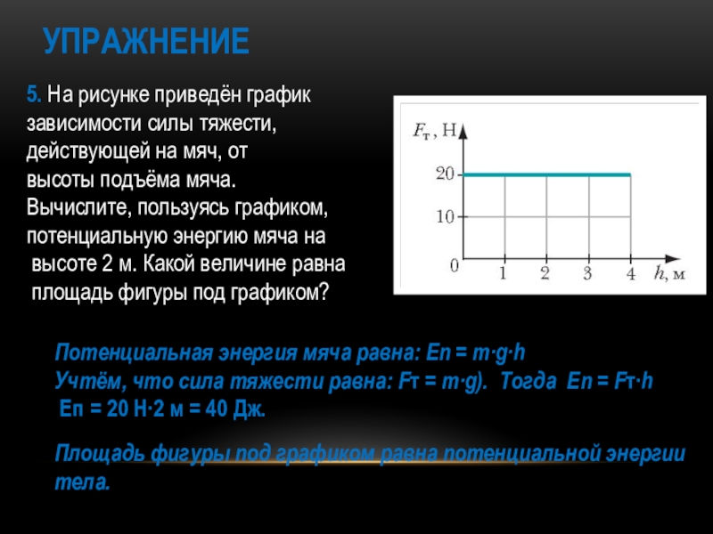 Площадь фигуры под графиком равна потенциальной энергии тела.