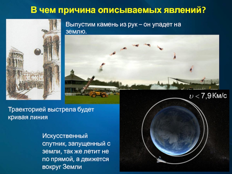 Искусственный спутник, запущенный с земли, так же летит не по прямой, а движется вокруг Земли
