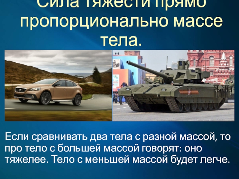 Когда массы тел одинаковы, то одинаковы и действующие на них силы тяжести.