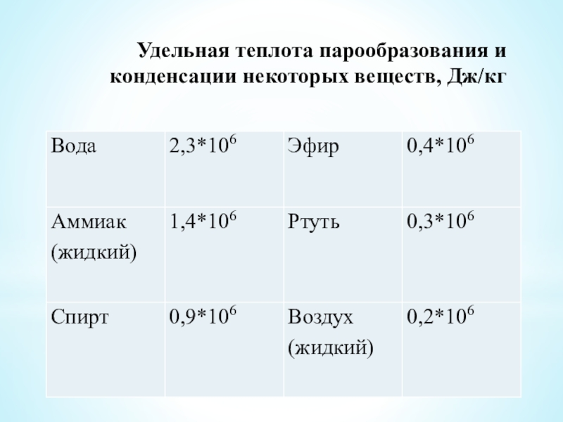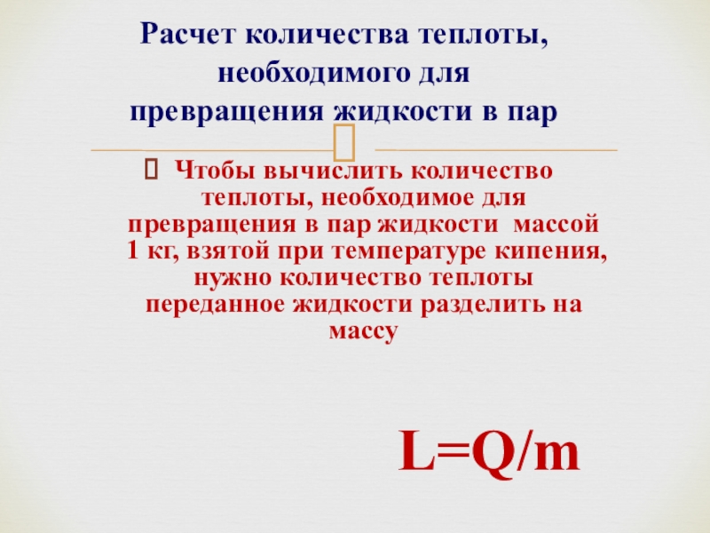Расчет количества теплоты, необходимого для превращения жидкости в пар