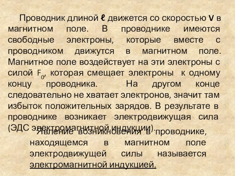 Явление возникновения в проводнике, находящемся в магнитном поле электродвижущей силы называется электромагнитной индукцией.