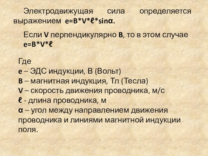 α – угол между направлением движения проводника и линиями магнитной индукции поля.