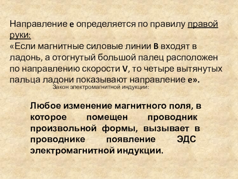 Любое изменение магнитного поля, в которое помещен проводник произвольной формы, вызывает в проводнике появление ЭДС электромагнитной индукции.