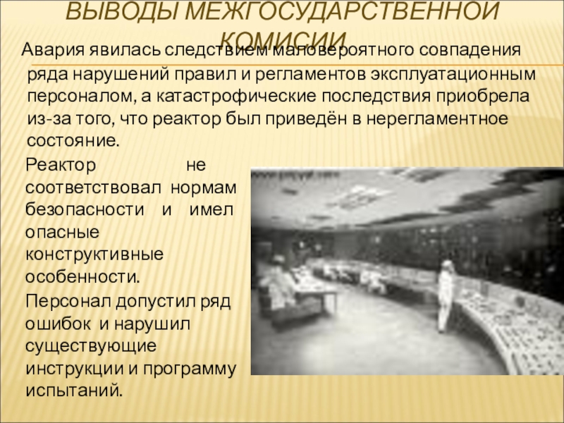 Реактор не соответствовал нормам безопасности и имел опасные конструктивные особенности.